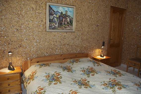* Ein Schlafzimmer mit Doppelbett,