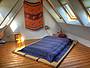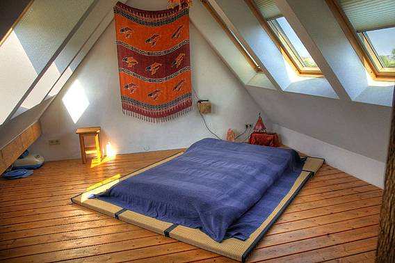 offene Schlafgalerie über dem Wohnzimmer mit japanischem Futon
