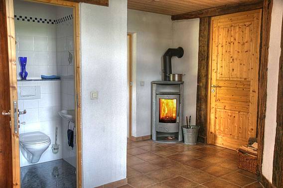 Massive Eichenbalken, das Knistern des wärmenden Feuers im Heizkamin, eine große Fensterfront mit Blick ins Grüne und auf den Schwarzwald. Machen Sie es sich davor gemütlich, relaxen Sie im Hängesessel. Zeit zum Genießen und Entspannen.