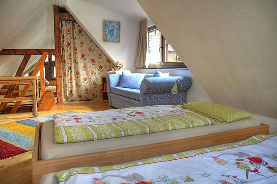 * Kinderzimmer mit 2 Einzelbetten und Schlafsofa