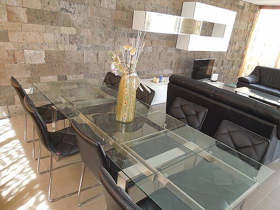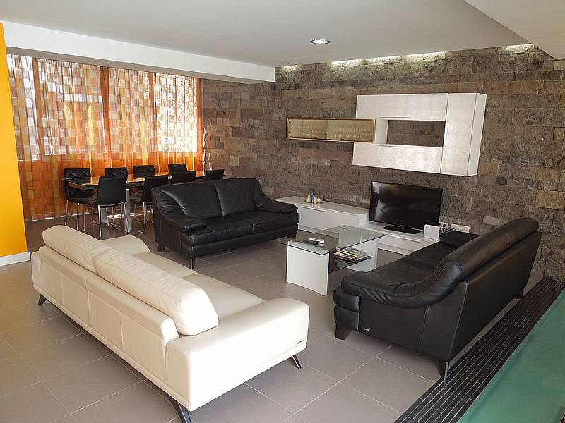 Das Haus bestehet aus 4 Etagen und hat einen privaten beheizbaren Pool mit Sonnenliegen und Essecke. Es gibt 3 große Terrassen, eine davon ist direkt am Pool, die beiden anderen Terrassen sind von den Schlafzimmern zugänglich. In allen Zimmern steht eine Klimaanlage zur Verfügung. Die Luxusküche verfügt über Miele-Einbaugeräte mit Geschirrspüler, Backofen, Cerankochfeld, Kaffeemaschine, Toaster, Mikrowelle und ein Wasserkocher. Außerdem steht ein Elektro-Grill zur Verfügung. Das große Wohnzimmer bietet einen Flachbild-Fernseher mit Satelliten-Programmen und einer Naturstein-Wand. Das Esszimmer bietet Platz für bis zu 10 Personen.
