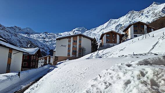 Das Ferienhaus "Azur" liegt im sonnigsten Dorfteil von Saas-Fee in ruhiger Lage. Neben uns befindet sich ein Lebensmittelgeschäft. Saas-Fee ist autofrei. 5 Gehminuten vom Zentrum und Parkhaus entfernt sowie 8 Gehminuten zu den Luftseilbahnen. In wenigen Gehminuten sind Sie mitten im Dorfzentrum mit all seinen verschiedenen Restaurants und Einkaufmöglichkeiten.