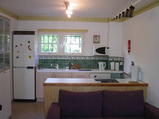 Küchenzeile, Kühlschrank, Gefrierschrank, Mikrowelle, Backofen, Waschmaschine, Bügelbrett, Bügeleisen, Kaffeemaschine, Toaster |