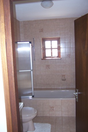Dieses Ferienhaus hat drei Schlafzimmer: ein Elternschlafzimmer mit angeschlossenem Badezimmer und Toilette im Erdgeschoss, ein zweites Doppelschlafzimmer befindet sich zusammen mit einem zweiten Badezimmer in der oberen Etage. Das zweite Badezimmer verfügt über Toilette, Waschbecken und eine freistehende Dusche.