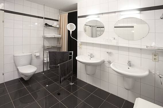 Duschbad, Badewanne, Wäscheständer, WC |