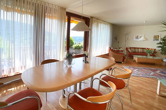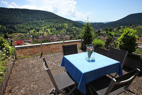 Unsere Komfortferienwohnung mit ca. 110 qm Wohnfläche liegt erhaben über Alpirsbach am Waldrand und bietet eine ungetrübte Aussicht von der herrlichen 15 qm großen Terrasse!