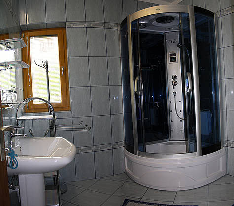 Eine Freitreppe führt Sie über die Terrasse zum Eingang in Ihr Domizil. Auf der 18 qm großen Terrasse befinden sich eine Hollywoodschaukel, Gartentische und Sitzmöglichkeiten. Von der Terrasse aus betreten Sie das 30 qm große Wohn / Esszimmer. Die Ferienwohnungen verfügen über eine offene Küche mit moderner Küchenzeile inklusive Geschirrspüler, Kühlschrank mit Gefrierfach, Cerankochfeld, Backofen, Spüle, Kaffeemaschine, ausreichend Geschirr, Bestecke und Töpfe, Esstisch und Stühle. Eine gemütliche Polstergarnitur sowie Stereo SAT- TV laden zum Relaxen ein. Vom Flur aus gelangt man in die einzelnen Schlafzimmer, Bad, WC, Wellness Dusche mit Massagedüsen sowie in ein weiteres Gäste- WC. Jedes der 3 Schlafzimmer verfügt über eine eigene Dusche! Somit hebt sich dieses Domizil qualitativ von anderen Objekten ab in denen es üblich ist, für 6 Personen nur ein WC und eine Dusche anzubieten.