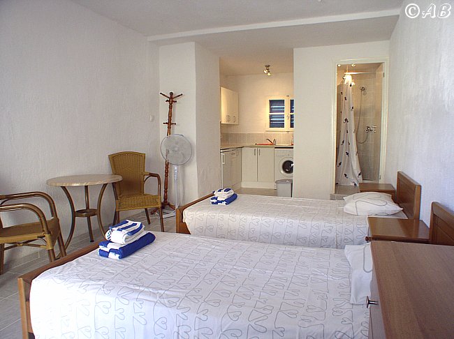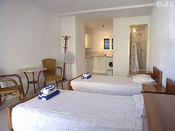 Die Ferienwohnung bietet Ihnen ein großes Wohnzimmer mit Kamin, eine komplett eingerichtete Küche, zwei Schlafzimmer, kleines Bad mit Dusche und WC, Klimaanlage, Waschmaschine, Interntzugang (W-LAN), ein extra Studio für 2 Personen (plus Baby) mit Kochnische und Bad, eine überdachte Terrasse mit Tisch, Stühle und Sonnenliegen sowie einen Parkplatz für den Mietwagen.