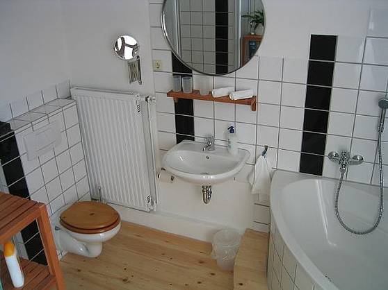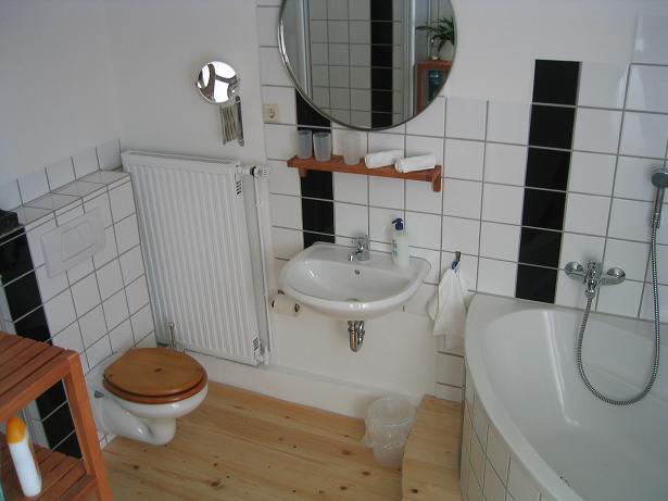 Duschbad, Badewanne, Wäscheständer, WC, Fön |